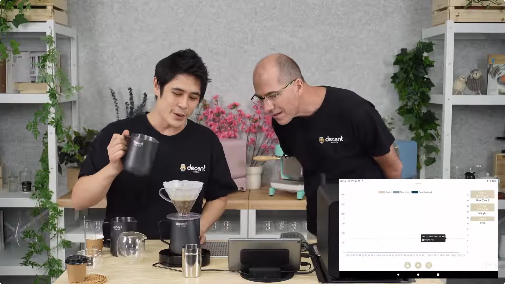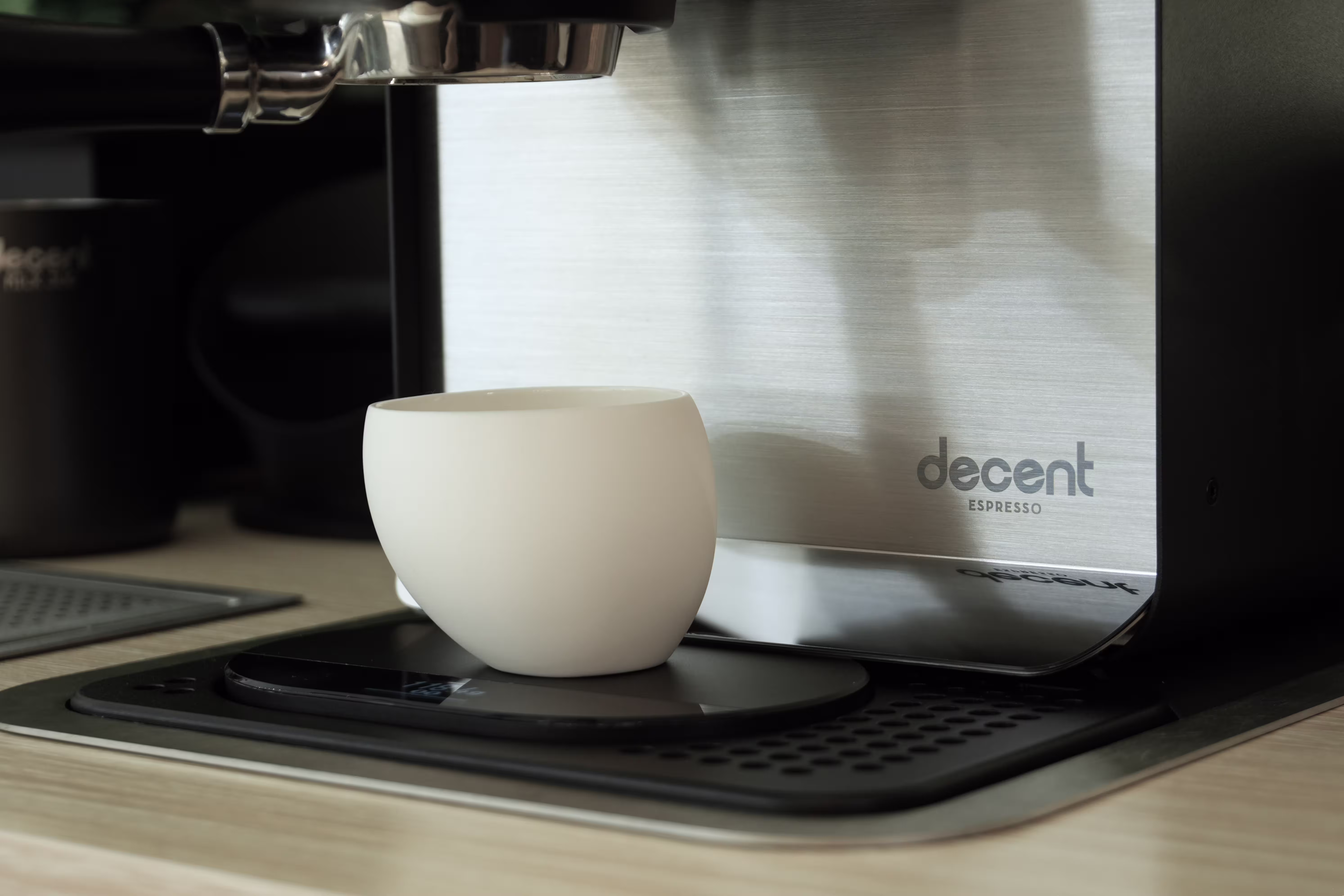 Connects to the DE1 app so you can set additional weight-based features. Espresso shots will automatically stop at your specified in-cup weight.